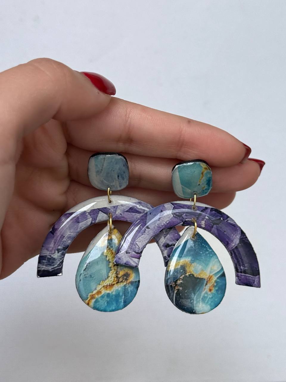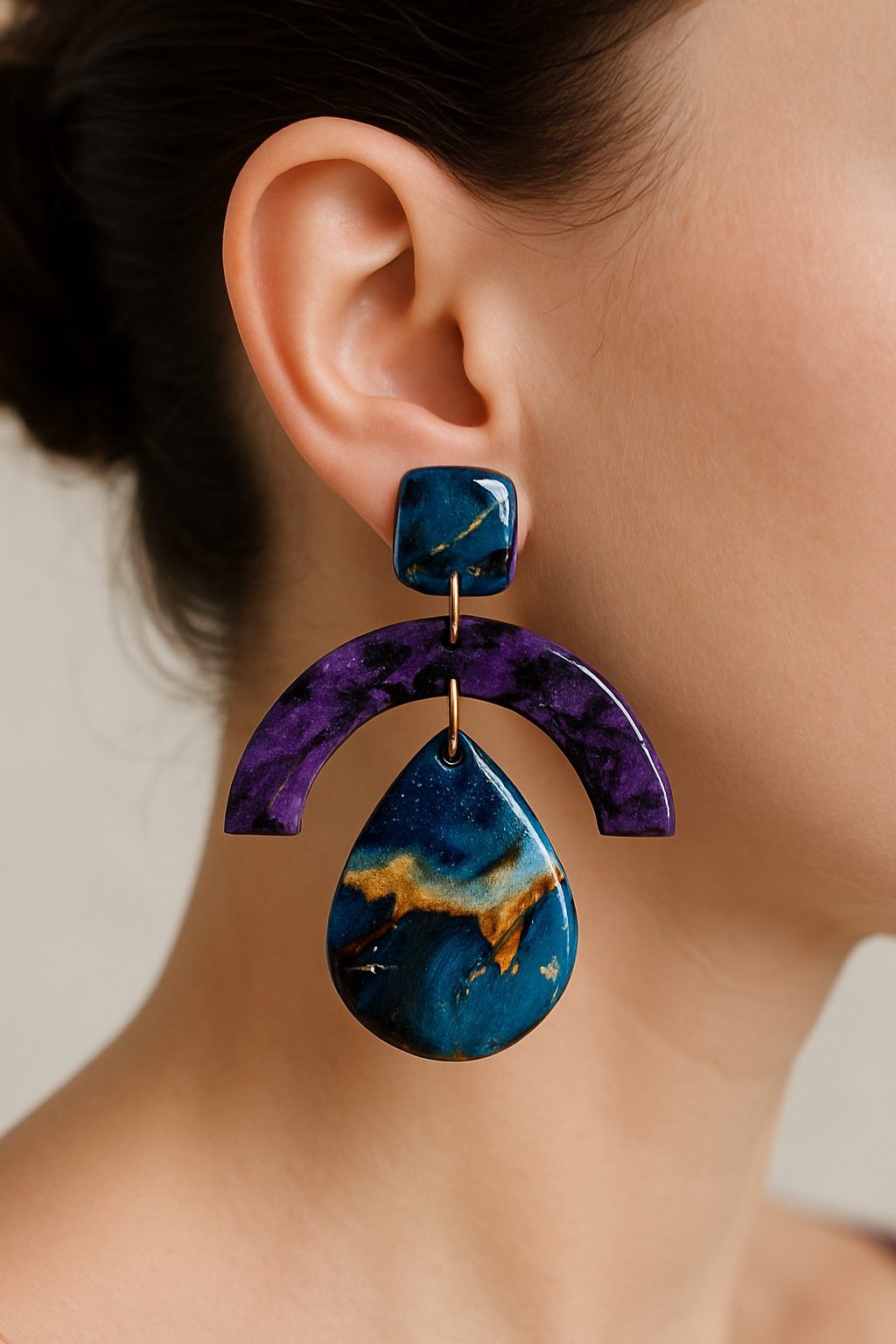 نوع محصولگوشواره رزینی دستسازجنس و ساختمولتی استایل با روکش رزین شفافاتصالاتاستیل ضد حساسیت و رنگ ثابتنوع قفلمیخیبسیار سبکهنری فانتزیمدلآسمانک